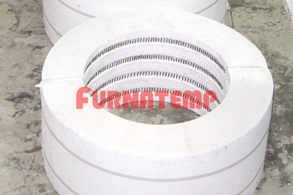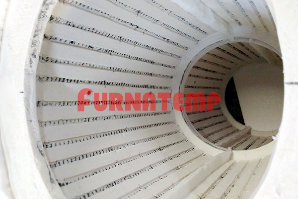 The blocks are very easily mounted to the furnace shell with the help of studs &bolts. The studs are made of the S.S.310 grade rods. The mounting assemblies in the FURNATEMP- modules are to a depth of 25 - 30 mm from the hot face, and will be covered with fiber plug, there by not exposing the stud to the element temperatures.